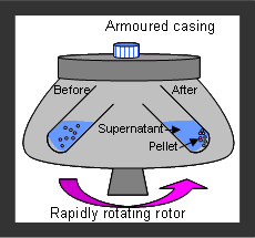 Centrifuge adalah peralatan yang menerapkan prinsip sentrifugasi untuk memisahkan partikel dari campuran. Partikel dalam campuran tersebut terpisah berdasarkan densitasnya, dimana partikel yang lebih padat mengendap sebagai pelet dalam wadah, sedangkan partikel yang lebih ringan tetap tersuspensi sebagai supernatan dalam campuran.